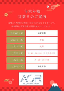 年末年始の期間は誠に勝手ながら休業・また営業時間を変更して営業を致します。